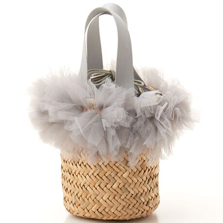 バレエのチュチュを連想させるフリルがゴージャスなミニかごバッグ。