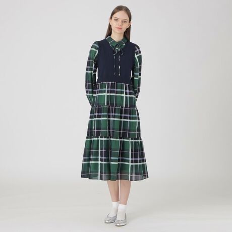 [型番:55J08520__]◆ニットドッキングドレス【Design】クレストブリッジチェックをメインにした華やかなニットドッキングドレスです。ニットの丈をショートにすることでスタイルアップが叶います。スカート部分は、ティアードデザインになっています。