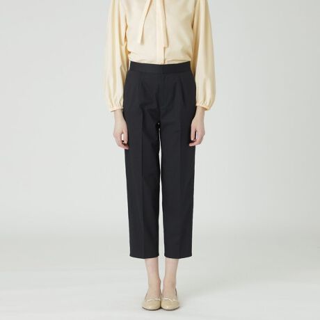 [型番:55R03526__]◆テーパードシルエットのスリムパンツ【Design】シンプルなスリムパンツです。裾に向けてテーパードしたシルエットです。フロントのクリーズラインがきれいめな印象をもたらします。後ろウエストはゴム仕様のため締め付け感なく着用いただけます。