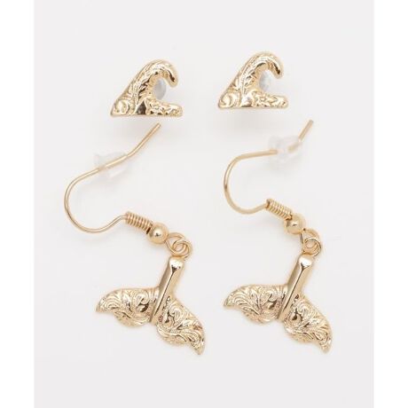 [型番:4CSZ0255-2025]ホエールテールと波(ナルの)セットピアス。どちらもハワイの海を感じさせるデザインです。