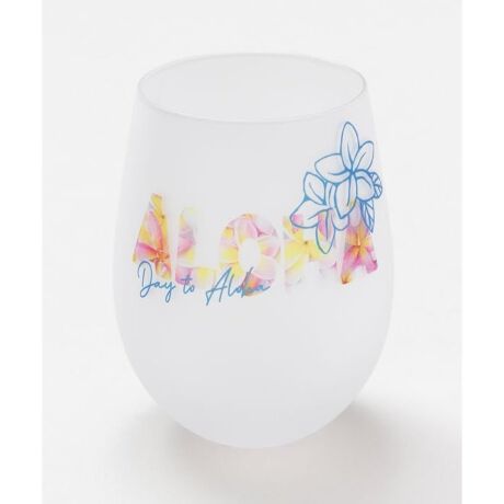 [型番:45LP2102-2025]ダイヤモンドヘッドとプルメリアの文字が素敵なグラス。オーシャンビューのバルコニーチェアに座って、アサイスムージーを飲んで贅沢なHAWAIIをお楽しみください。※口径7cm