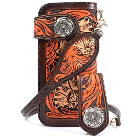 【職人が丁寧に染め上げた逸品】・25年以上の経験を持つ職人の施したウォレットがケイシイズより新発売。【KC.s(ケイシイズ)】素材、染色、裁縫、部位全ての項目に拘った革製品ブランドKC.s(ケイシイズ)。【手彫りで描かれた花模様】表面の絵柄はすべてカービングよる手彫り作業で描き、職人の技術を詰め込んだアイテム。※1【美しいコントラストに】特殊繊毛を使った特殊な染料を用いた手染めは、美しいコントラストを実現。【充実した収納】・10個のカードポケットや5つのフリーポケットを設け収納力抜群♪【U字にカットされたポケット】・ポケットの開口部はU字にカットされたデザインでカードや領収書もスムーズに取り出せる。【ブランドオリジナル刻印】Dカンとフラップ内部にはブランドロゴの刻印付き。細かい所までこだわりアリ◎【年代問わず使えるデザイン】繊細で華やかな花の絵柄が女性らしいデザインに。派手すぎないカラーで大人女子さんにも◎【大きな存在感のある留め具】留め具は大きな花デザインのスナップボタン。中央のビジューがキラッと輝くアクセント♪【雰囲気を壊さないベルト付属】・2本ベルトを付属。どちらもベルト全体にカービングを施し華やかな印象の仕上がりに。※2【ギフトにもオススメ】化粧箱のパッケージに入っているので、そのままギフトに贈るのもオススメ♪【ポケット仕様】カードポケット×10、フリーポケット×5、お札入れ×1、小銭入れ×1※1 カービングとは何種類もの専用工具を使い手彫りで柄を描く職人技術※2 付属品・・・・ロングベルト×1 ショートベルト×1