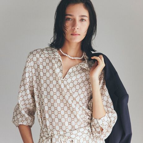 【Precious掲載】【ウォッシャブル】ロープモノグラム ブラウス