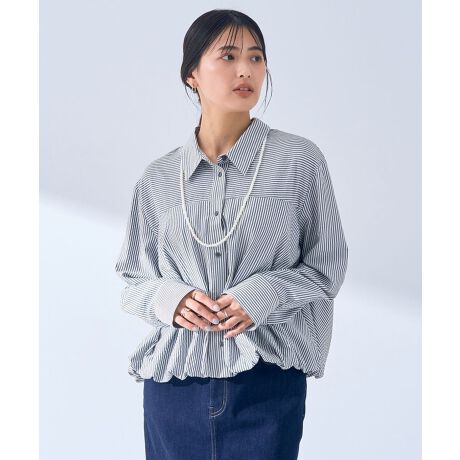 秋に人気のあったバルーンシャツを春らしい軽やかな生地でアップデート。