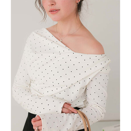 ・こなれ感のある肌見せを叶えてくれるオフショルダーロングTシャツ・ドレープデザインが今季トレンド・程よく厚みがあり柔らかい素材感・身体にフィットするシルエット・1枚で主役級のアイテムです[型番:AFXN2168]