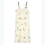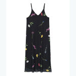 ・大柄のプリントチュール素材で存在感のあるキャミソールワンピース・合皮の肩紐がモード感をプラス・深めのVネックで抜け感のある1枚・身体のラインを拾わないAラインシルエット[型番:RFXT0312]