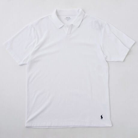 コットンをベースに、環境に配慮されたリサイクルポリエステルを混紡した糸を使用。テリークロス(パイル)素材のショートスリーブジョニーカラー(スキッパー)シャツです。柔らかな風合いで快適な肌当たり。軽い着心地と乾きやすさも特長です。リラックス感のあるジョニーカラー(スキッパー)デザインや、左裾に入れたブランドアイコンのポロプレイヤー刺繍もポイント。同素材を使用したショートパンツ(RM8-B304)も展開しているので、セットアップでの着用もオススメです。