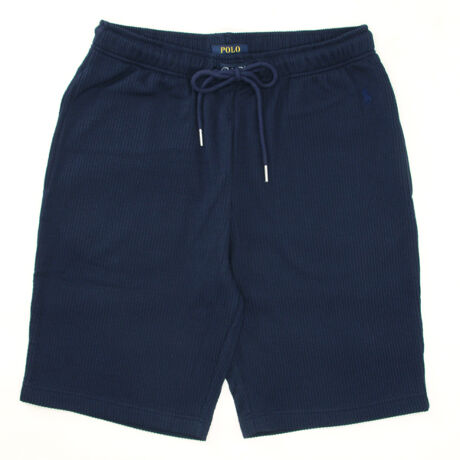 コットンと環境に配慮されたリサイクルポリエステルを混紡したニットシアサッカー素材を使用したスリープショートパンツです。無地でありながら織柄がストライプに見える表面感と、軽い着心地が特長。ストレッチ性が高く、生地表面に凹凸のある構造がもたらす清涼感も魅力です。フロントセンターに縫い付けたラベルと、左ウエスト部分に全ボディカラー共通のネイビーで入れたブランドアイコンのポロプレイヤー刺繍もポイントです。同素材を使用したショートスリーブクルーネックシャツ(RM8-B207)、ショートスリーブパジャマトップシャツ(RM8-B208)も展開しているので、セットアップでの着用もオススメです。
