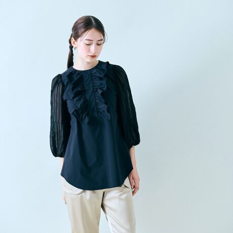 袖シアープリーツブラウス