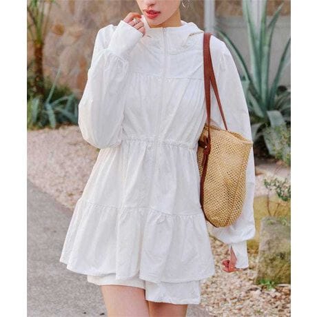 ティアードデザインが軽やかで女性らしい印象を与え体型カバー効果も抜群。