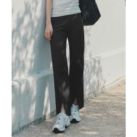 裾のスリットデザインが足元に抜け感をプラスし、美脚効果も抜群。