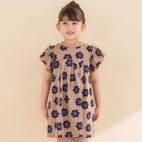 大きめの花柄プリントが可愛らしい女の子用ワンピース。