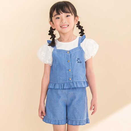 【お揃い】リップストップ・ダンガリービスチェ+パンツセットアップ(90~130cm)