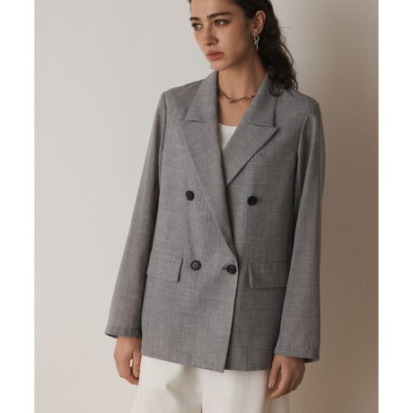 ウール混の上質なボイル素材を使用した、シャツ感覚で着用出来るテーラードジャケット。襟が上向きに尖っているシャープなピークドラペルにダブル仕様にする事で、モード薫る一着に仕上げました。ヒップにかかる着丈バランスにコンシャス過ぎないややゆとりのあるストレートシルエットが、かしこまりすぎない上品な大人っぽさを演出。シワになりにくく、手洗い可能な点も日常使いに嬉しい点。薄くて非常に軽く、さらっとラフに羽織っていただける気軽さが嬉しい一着です。