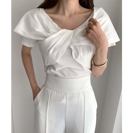 【Jasmine】2WAY肩見せクロスデザイン半袖Tシャツ