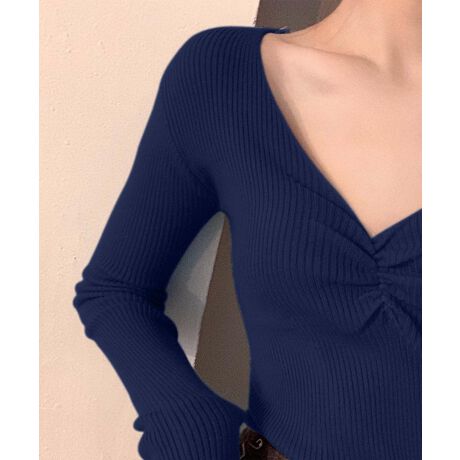 シンプルで美しいラインを作り出すVネックリブ編みニットトップス。_x000b_程よくフィットし、女性らしいシルエットを引き立てる万能アイテム!