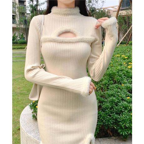 【Jasmine】マラボー胸カットアウトニットミニワンピース