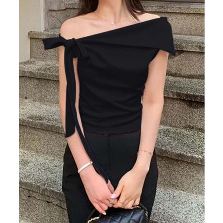 トレンド感溢れるデザインで、女性らしさを引き立てる肩見せショートトップス。