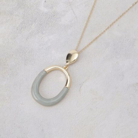 オーバル型のリングにきれいなカラーのパーツをデザインしたワントップネックレス。