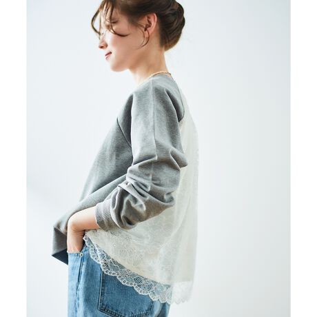 《手洗い可能》バックレーススウェットプルオーバー