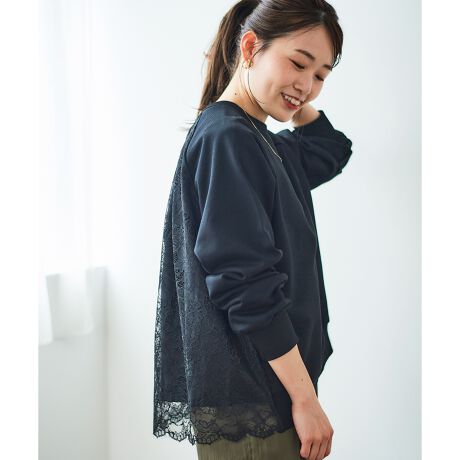 《手洗い可能》バックレーススウェットプルオーバー
