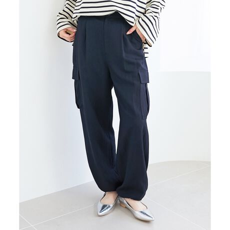 落ち感のある風合いが女性らしくカジュアル過ぎない素材が魅力。