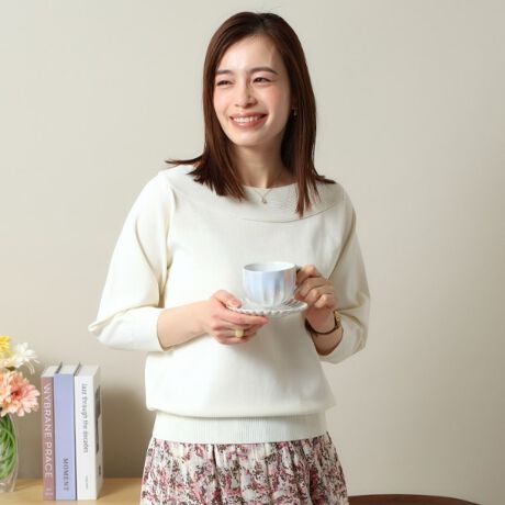 さらにボートネックがデコルテラインをすっきりと魅せてくれます。