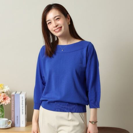 さらにボートネックがデコルテラインをすっきりと魅せてくれます。