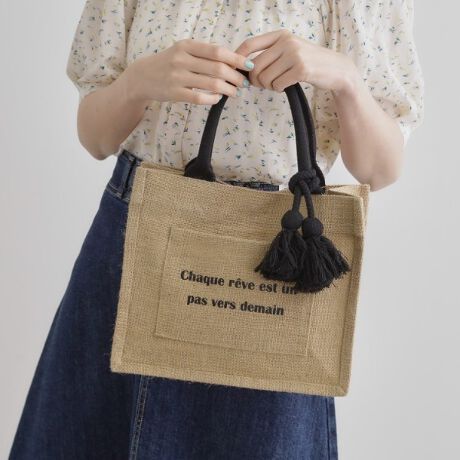 ジュートのナチュラル素材が雰囲気のあるトートバッグです。