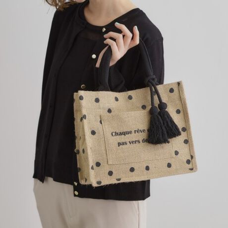 スクエアタッセルジュートトート