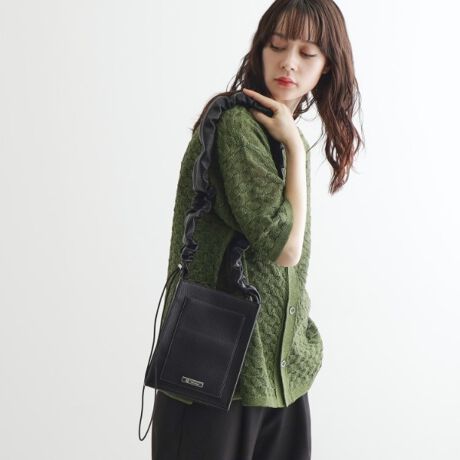 ショルダーのドロストデザインが特徴的なショルダーバッグ。