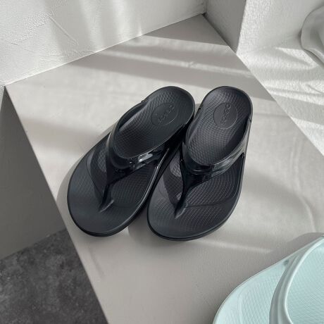 「OOFOS」は、2011 年にマサチューセッツ州でスポーツ選手や大手シューズメーカーの製品開発チームにより開発されたリカバリーシューズブランドです。製品に使われている特殊素材OOfoamは、一般的な EVA 素材のソールと異なり、衝撃の反発を 37% 抑え、着地による足裏への衝撃や膝、腰、背中にかかる負担を軽減します。人間工学に基づいた設計により、足を優しく包み込み、土踏まずをしっかりサポートします。