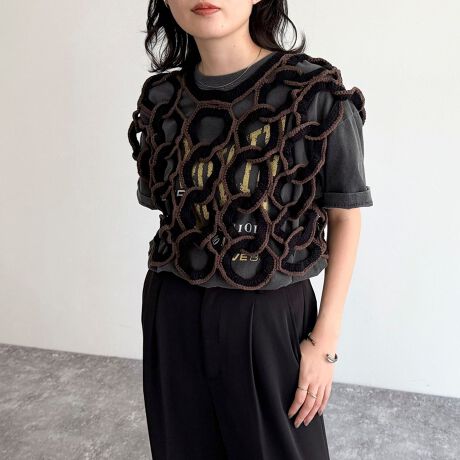 ・手編み感のある編み地がお洒落なサークルかぎ針トップスです