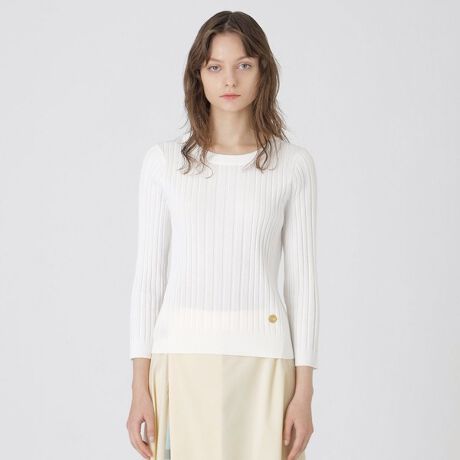 程よく身体にフィットする8分袖のランダムリブニットです。