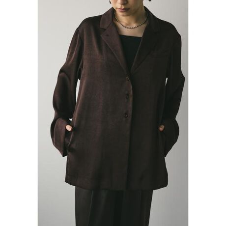 モデル身長162cm(FREEサイズ着用)表面感のあるサテン素材を使用したテーラーシャツ。袖ラインは肘部分でやや細くし袖口にかけて広がるシルエットに仕上げたことで、腕周りをより細く長く見せてくれます。ポケットはあえて上に設定しているのでスタイルアップ見せしてくれる一枚です。ストレッチあり、透け感なし。【お手入れ方法】手洗い可