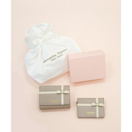 ◇Samantha Thavasa Petit Choice(サマンサタバサプチチョイス)の「数量限定」リボンラッピングシリーズスペシャルセット 「MAGASEEK&d fashion限定」サマンサタバサプチチョイスで大人気のリボンラッピングシリーズのパスケース&折財布がセットになったスペシャルギフトセット。単品合計価格26,950円(税込)が22,000円(税込)と大変お得なセットです。プレゼントボックスにかけられたリボンをイメージしたキュートなシリーズなので、ギフトにおすすめのアイテム。サマンサタバサプチチョイスオリジナルのギフト巾着に入れてお届け。※パスケースと折財布は同じカラーのセット販売となります。数量限定の為、ぜひお早めに♪▼折財布・三つ折りタイプの折財布で、コンパクトながらお札やカードもしっかり入る仕様◎・小銭入れ部分が二つに分かれているので仕分けがしやすいのもポイント。・収納力があるので長財布からの買い替えにもおすすめ。・カードポケット×8・フリーポケット×2▼パスケース・人気の二つ折りタイプでフラップボタンで開け閉め出来るデザイン。・サイドに金具が付いているので、別売りの単品チェーンやファスナーチャームを付けられます。・カードポケット×2・フリーポケット×2