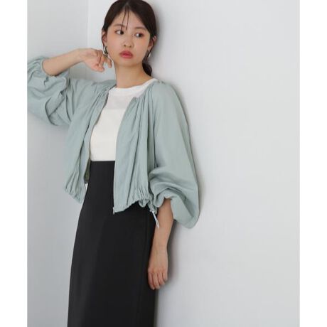 襟・袖口・裾にギャザーデザインを施し、ふんわりしたフォルムがポイントのブルゾン。裾はストッパーが付いているので、ギャザーの寄せ具合を調整できます。フェミニンなワンピースは勿論、縦ラインを活かしたスカートとも相性良く着用いただけます。<素材>適度なハリのあるポリエステル素材を使用。トレンドのシアー感がありつつ透けすぎない生地です。<詳細>仕様・前ファスナー裏地・なし透け感・ややあり / 光沢・なし / 伸縮性・なし 生地の厚さ・薄手※モデルの着用画像の場合、光の当たり具合により、実際の色味と異なって見えることがございます。色味は、商品単体の画像をご参照ください。