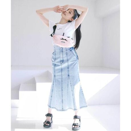 サイドのレースアップデザインが特徴的なデニムマーメイドスカートです。レースアップがウエスト周りをすっきり見せつつ、程よいフィット感で女性らしいシルエットを演出。裾にかけて広がるマーメイドラインが、美しい曲線美を引き立て、エレガントな印象もプラスします。バックにはさりげないポイント刺しゅうが施され、カジュアルにもきれいめにも着回しできる1枚。Tシャツやブラウスと合わせるだけで、こなれ感のあるスタイリングが完成します。※撮影時照明の関係により、色味が違って見える場合がございます。またパソコン・スマートフォンなどの環境により、若干製品と画像のカラーが異なる場合もございます。予めご了承ください。商品の色味は、商品単品画像をご参照下さい。※商品画像はサンプルのため、色味やサイズ等の仕様に変更がある場合がございますので、予めご了承ください。
