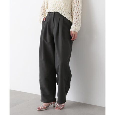 丸みのあるシルエットが特徴のバレルパンツ。脚のラインが響かない立体的なシルエットでこなれた印象に見せてくれます。腰まわりをカバーするツータックを入れたデザインと、後ろウエストはゴム仕様でラクなはき心地。透かし編みニットやメッシュトップスを合わせてカジュアルにも、シャツブラウスを合わせたモードフェミニンな雰囲気でも着用いただけます。