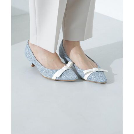 ツイード生地を使用した華やかなパンプス。トレンドが続くリボンディテールを施し、異素材感のあるデザインがポイント!3.5cm程度のヒール高でフラットよりも歩きやすく疲れにくい一足です。