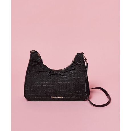【2WAY仕様】レザー調素材のナローリボンを散りばめた大人可愛いショルダーバッグ。