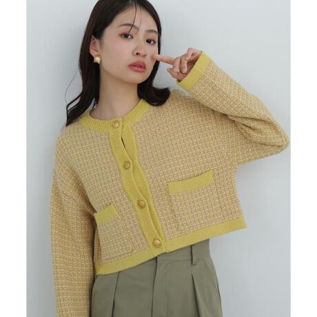 ツイードライクに仕上げたニットブルゾンは、きらっと釦もアクセントになり、カジュアルすぎず上品に着こなせるデザイン。前ボタンを開けたままでも羽織っていただけるシルエットです。ショート丈なので縦ラインを意識したナロースカート、ワイドパンツ、カジュアルなデニムパンツを合わせ、甘すぎないコーディネートがお勧めです。