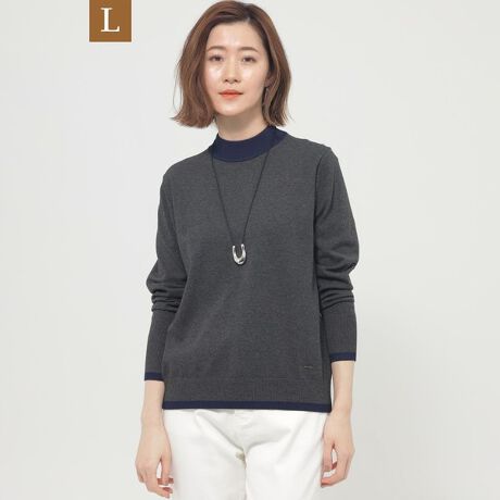 【L】【1枚でもコートインでも!】【ウォッシャブル】ハイゲージカラーブロックニット