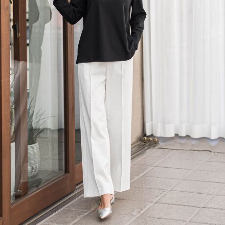 脚長効果のある美脚ワイドシルエットにセンターピンタックを施こすことで、