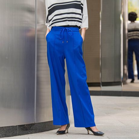 脚長効果のある美脚ワイドシルエットにセンターピンタックを施こすことで、