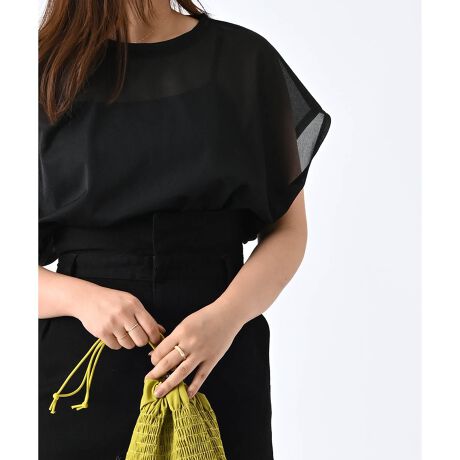 アウトスタイルでもシアー感が軽やかで、ワイドボトムにもマッチ。