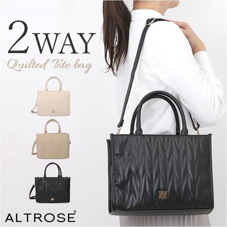 【オン・オフ問わずヘビロテ確定】通勤・通学から、休日のお出かけもお任せ☆見た目以上にしっかり入る「ロージアトート」。【レディライクなシンプルデザイン】ソフトなキルト生地で、上品に仕上げたアイテム。ワンカラーに、ゴールドプレートロゴをON。【お好みに合わせてスタイルチェンジ】手持ちのトート♪長さ調節可能なショルダーを取り付け、肩掛けや斜め掛けもできる2way。【開閉スムーズ、安心の天ファスナー】ガバっと開いて取り出しやすく、ファスナーを閉じれば中身の飛び出しをガード。【B5対応ですっきりひとまとめ】B5が横向きに、500mlペットボトルも収納可能。ポーチなどマストアイテムがこれ1つに。(※)500mlペットボトルは縦向きに入れた場合、上部が少しはみ出します。【サクッと取り出せて迷子知らず】内側に3つのポケットを配置。細々した物も、バッグの中で探す手間が不要。【キレイなフォルムも安定性もキープ】底面は程よい硬さがあり、型崩れしにくいスクエア形状。荷物を入れていない状態でも自立。【コーデに馴染むベーシックカラー】落ち着きのあるカラーで、大人可愛く♪コーデに合わせやすく、飽きのこないデザイン。【ポケット仕様】内側:ファスナーポケット×1、オープンポケット×2