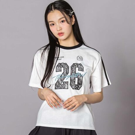 ナンバリングプリントにレースのディテールを取り入れているから、カジュアルだけどかわいくも着られちゃう!