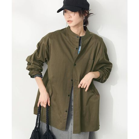 バンドカラーできちんと感がありながら、サイドスリットを入れたボックスシルエットで着合わせしやすい1枚です。