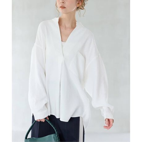 こなれたゆる感とスッキリとした襟元が一枚で様になるデザイン。